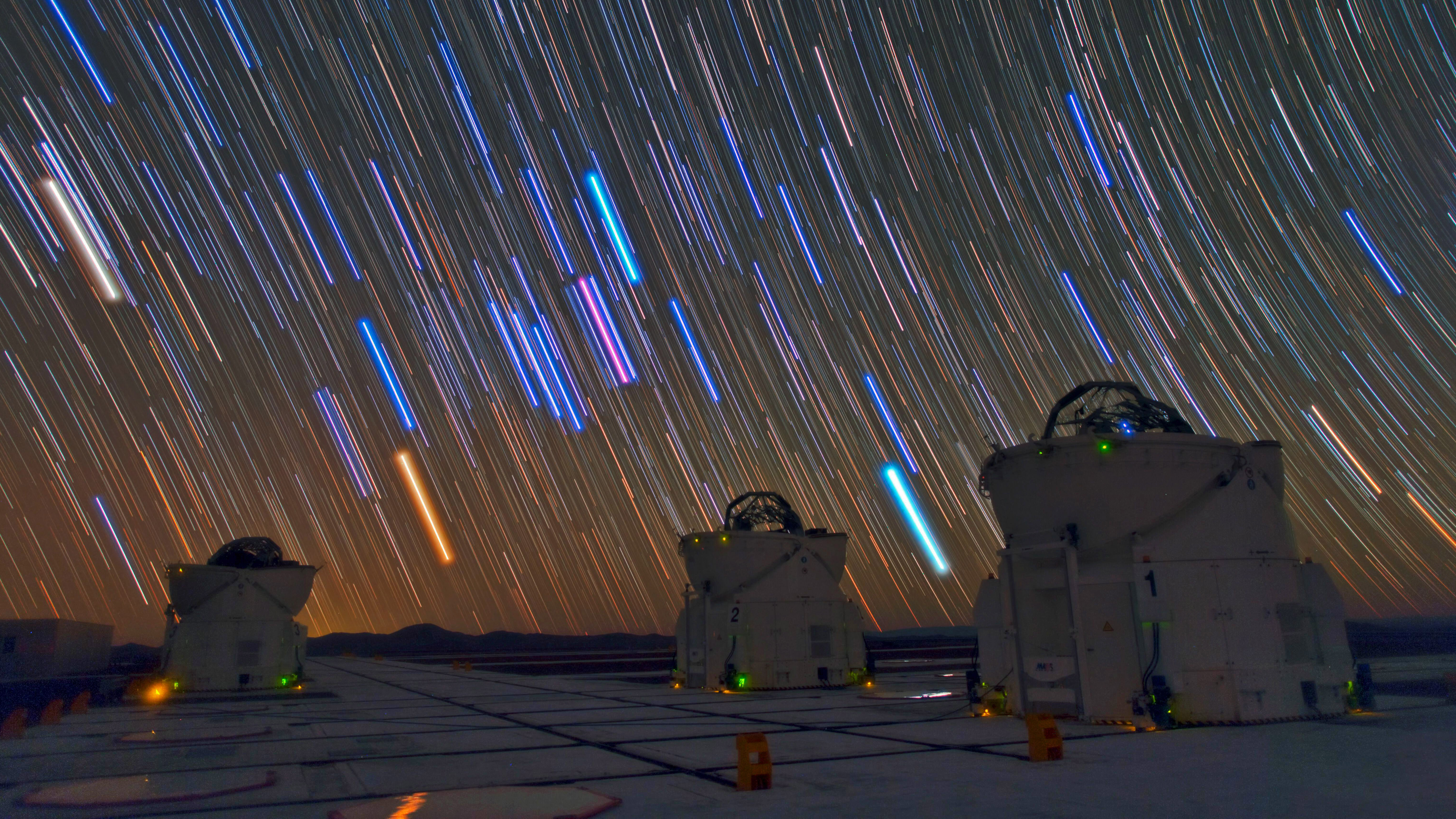 Telescopes and star trails at Paranal Observatory, Atacama Desert, 智利 (© Matteo Omied/Alamy)