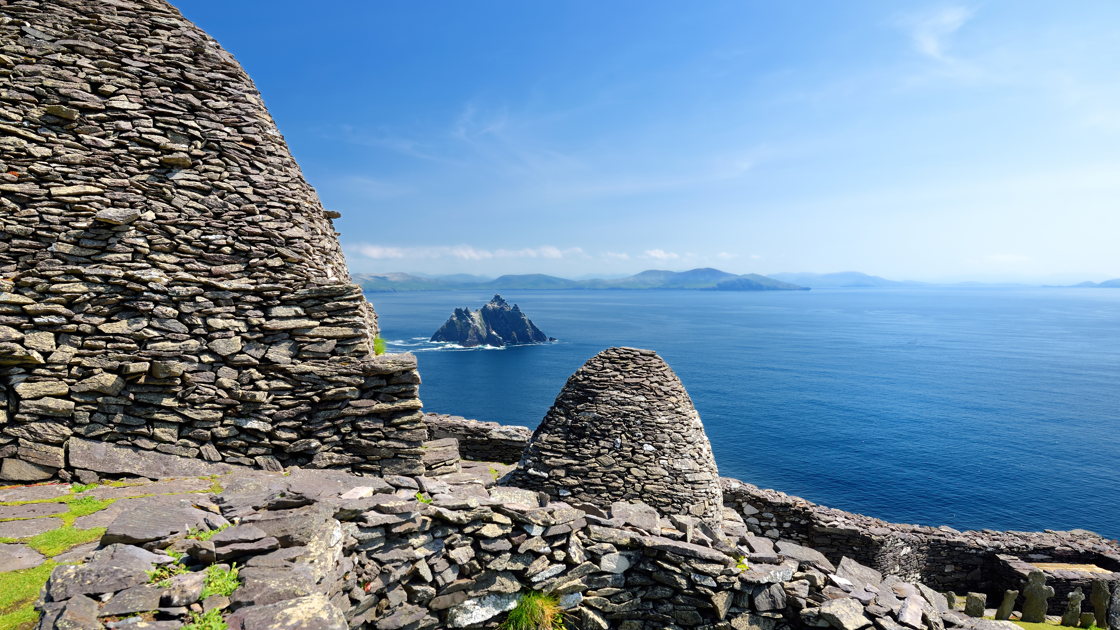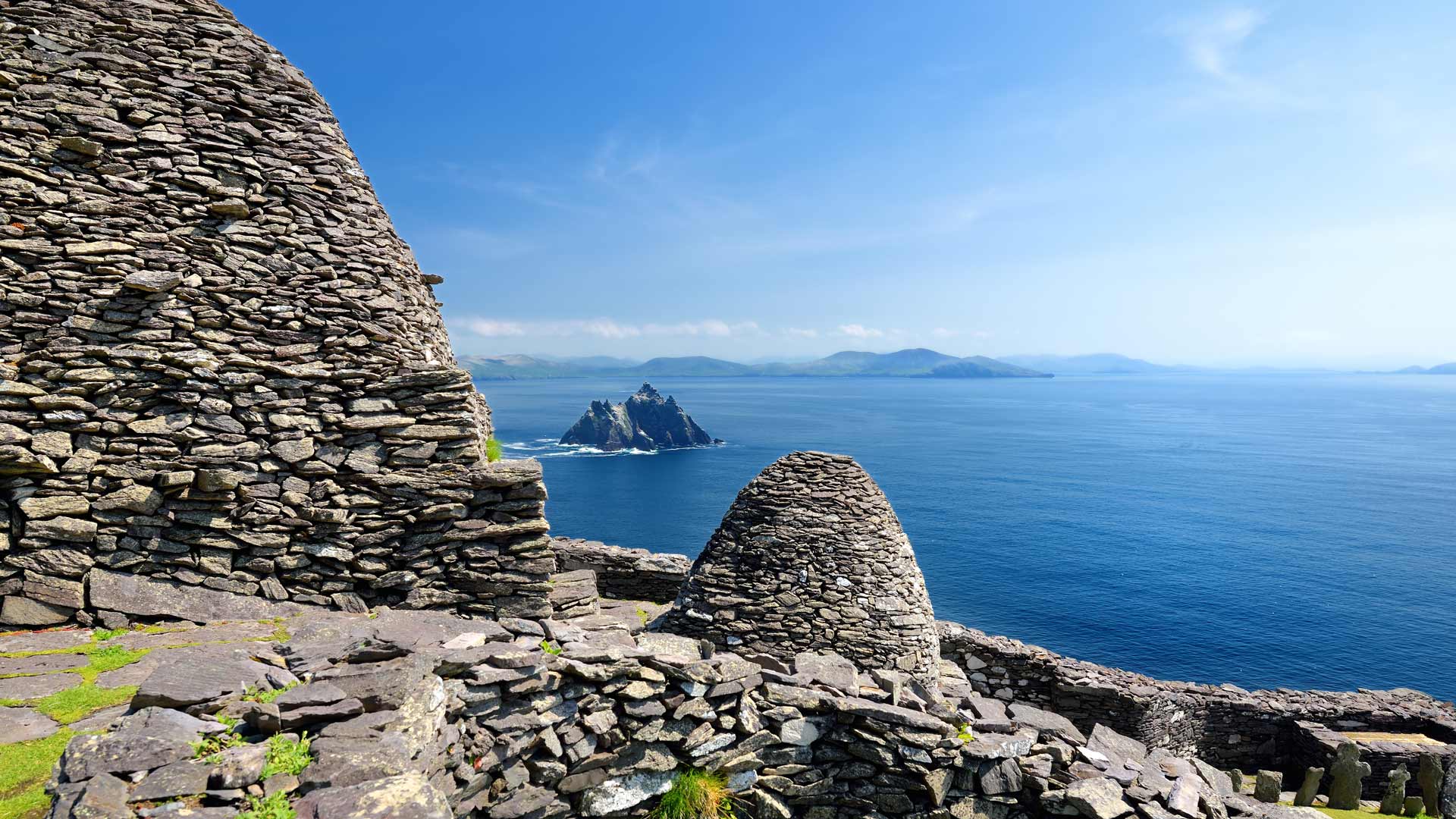 Ruins of an ancient monastery on the island of Skellig Michael