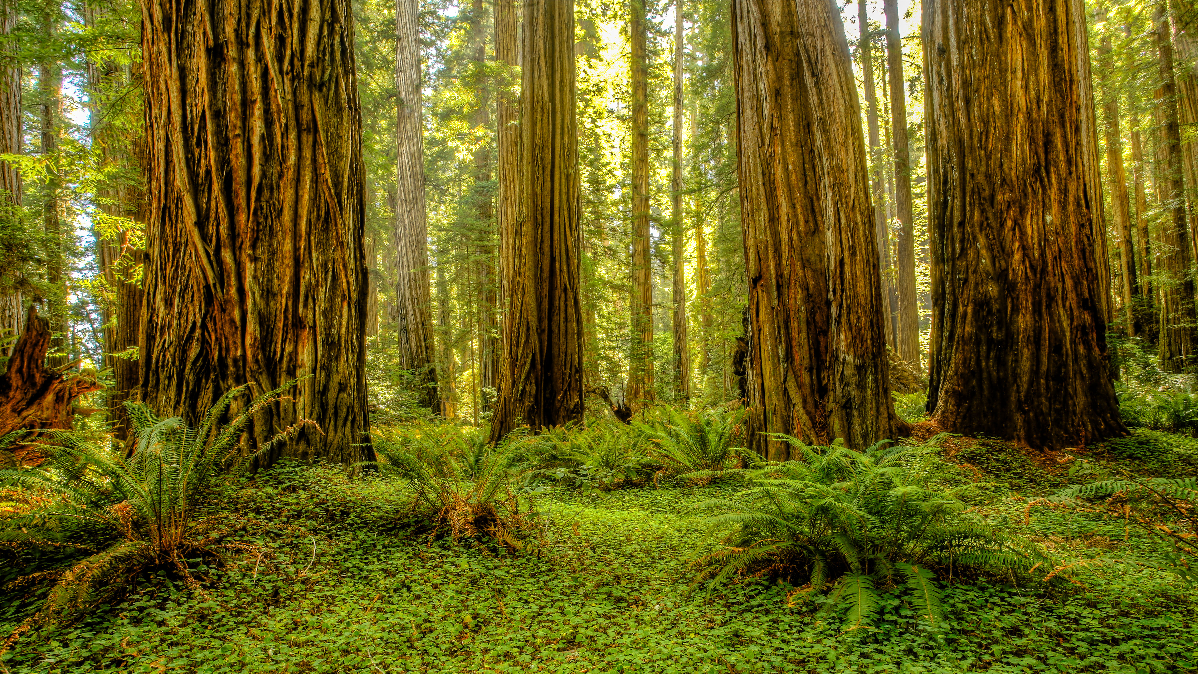 Grove of redwoods in Redwood National and State Parks, 加利福尼亚州 (© Bob Pool/盖蒂图片社)